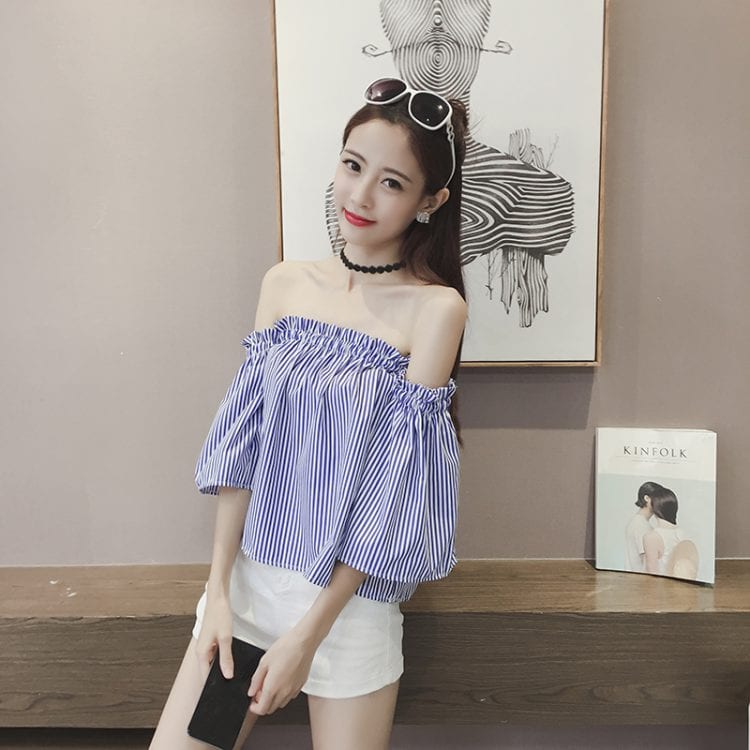 - เสื้อเปิดไหล่ สีสันสดใส แน่นอนว่าแฟชั่นสไตล์นี้ใส่เมื่อไหร่ก็เก๋ เหมาะสำหรับใส่ช่วงหน้าร้อน แบบแอบเปรี้ยวนิดๆ แต่ก็ยังคงความน่ารัก ใสๆไว้ ไม่ซ้ำใคร