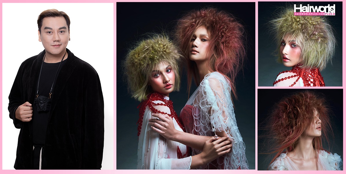 มีทั้งเทคนิคการใช้สี เทคนิคบาลายาจ และก็ทำเท็กซ์เจอร์ของเส้นผมให้มันออกมาในรูปแบบซึ่งแปลกตามากไปกว่าเดิม ถ้าดูจากนางแบบจะเห็นว่าเราใช้แผ่นครอสติช ปักดึงผมขึ้นมาทีละช่อๆ จนครบทั้งศีรษะ ซึ่งใช้เวลานานมากๆ