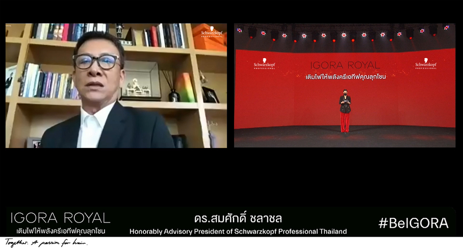 ในงาน Live Event นี้ได้มีการจำลองเวที Hair Fashion Show เพื่อสร้างบรรยากาศการรับชมเสมือนอยู่หน้าเวที มีเหล่าช่างผมและผู้มีชื่อเสียงในวงการซาลอนกว่า 200 ท่านร่วมรับชม โดยได้รับเกียรติจาก ดร.สมศักดิ์ ชลาชล Honorably Advisory President of Schwarzkopf Professional Thailand มาพูดคุยสายตรงผ่านซูม บอกความประทับใจใน IGORA ROYAL จากประสบการณ์ รวมถึง Trend Team Schwarzkopf Professional 2 ท่าน ได้แก่ ดร.ทศพร นพวิชัย และอาจารย์วรพันธ์ เลิศวิริยะประภา มาร่วมให้กำลังใจแฮร์สไตลิสต์รุ่นใหม่ ปลุกไฟความเป็นมืออาชีพอย่างเป็นกันเอง