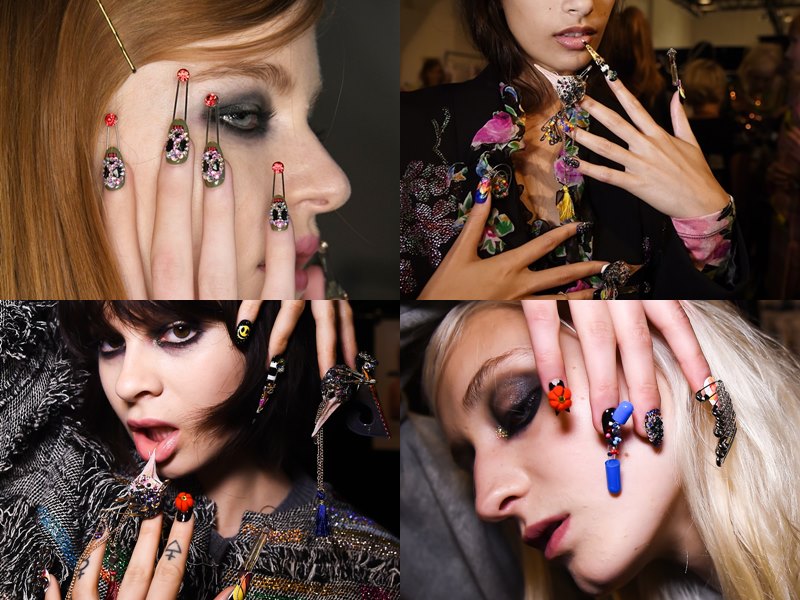 ภายใต้แนวคิดที่ต้องการเนรมิตเรียวเล็บให้กลายเป็นอีกหนึ่งเครื่องประดับแทนจิวเวลรี่ เราจึงเห็นการใช้วัสดุหลากหลาย ไม่ว่าจะเป็นคริสตัล มุก ลูกปัดหลากสีสันที่เรียงประดิดประดอยมาอย่างบรรจง อัพลุคเป็นสาวสุดหรู กูตูร์ตั้งแต่ศีรษะจรดปลายเล็บกันไปเลย