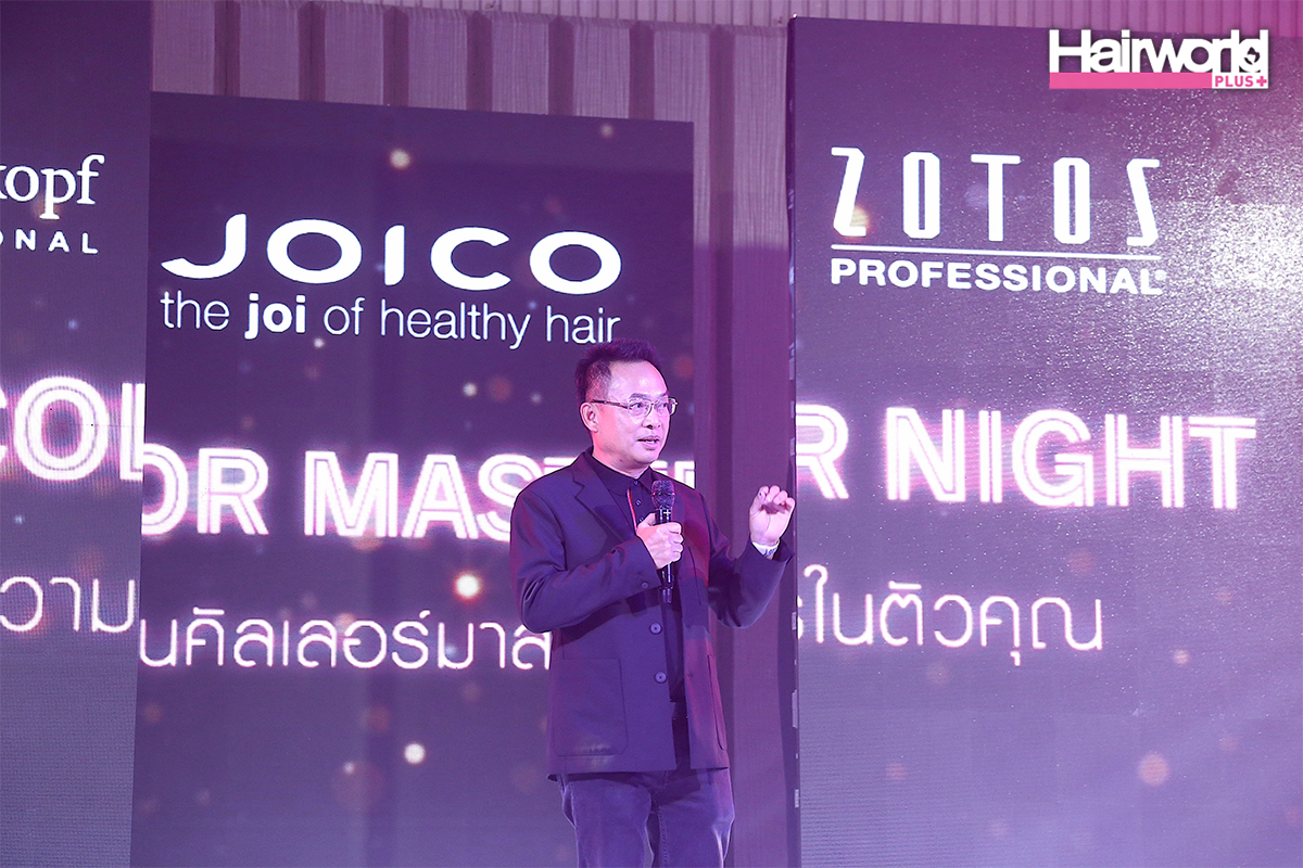 ต่อด้วยไฮไลท์ในช่วงค่ำ กับปาร์ตี้ “The Color Master Night” โดย คุณธีรศักดิ์ ไตรทิพย์ General Manager Henkel Beauty Care Professional Thailand ได้กล่าวขอบคุณลูกค้า เหล่าช่างผมที่ให้การสนับสนุน และร่วมเป็นครอบครัว SKP มาโดยตลอด รวมถึงการเติบโตของ SKP อย่างต่อเนื่อง จากนั้นเข้าสู่ช่วงแฟชั่นโชว์สุดพิเศษ ที่เริ่มด้วยแฟชั่นโชว์จาก 2 นายแบบและนางแบบ เปิดตัวผลิตภัณฑ์ปกป้องเส้นผมจากการทำเคมี New! FibrePlex สูตรเฉพาะจากประเทศญี่ปุ่น โดยมีคุณเวย์-นนทพร แก้วทอง PPS Advisor ชวาร์สคอฟ โปรเฟสชั่นแนล มาแนะนำ FibrePlex 2 สูตรใหม่จากประเทศญี่ปุ่นก็คือ No.1 FibrePlex Bond Booster และ No.2 FibrePlex Bond Fixer ให้ช่างผมไทยเตรียมพิสูจน์เทคโนโลยีสุดล้ำนี้พร้อมกัน